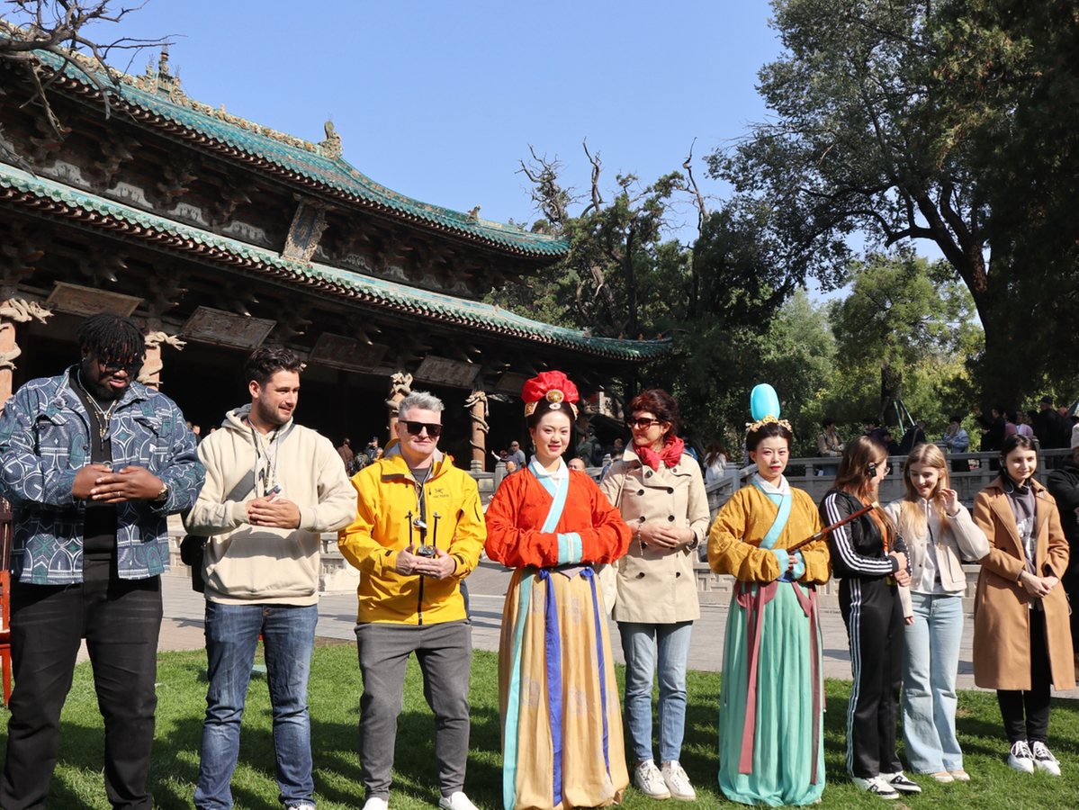 中国日报网太原电 10 月 14 日,来自美国、英国、俄罗斯、法国等8个国家的10位外籍学者和博主探访太原古迹,实地感受中国文化的独特魅力。