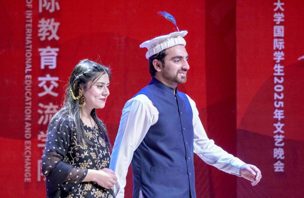 中国日报网太原电 12月7日晚,山西大学国际学生2025年“青春‘晋’彩·筑梦华章”文艺晚会在太原上演。来自泰国、缅甸、埃及、巴基斯坦等30多个国家的留学生登台献艺,以音乐、舞蹈、武术、朗诵等多种艺术形式喜迎新年。