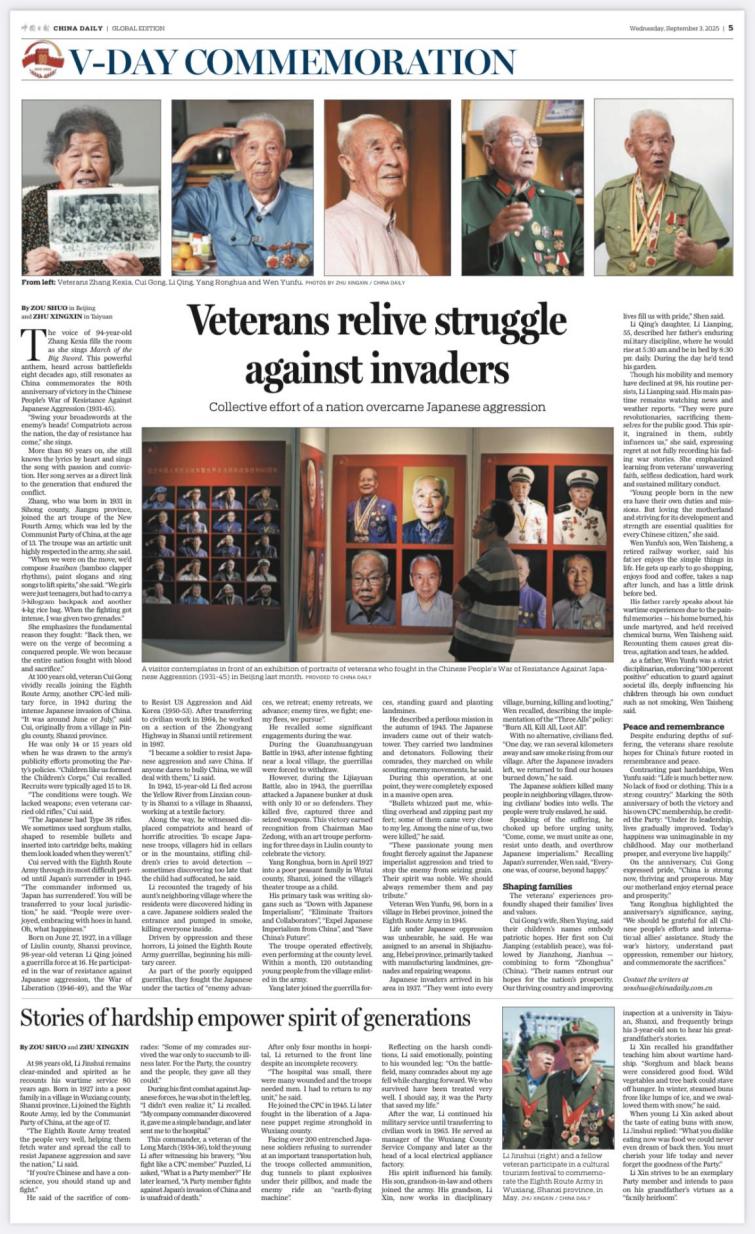 尽管经历了深重的苦难,老兵们都怀着对中国未来的坚定希望,而这希望源于铭记历史与珍惜和平。