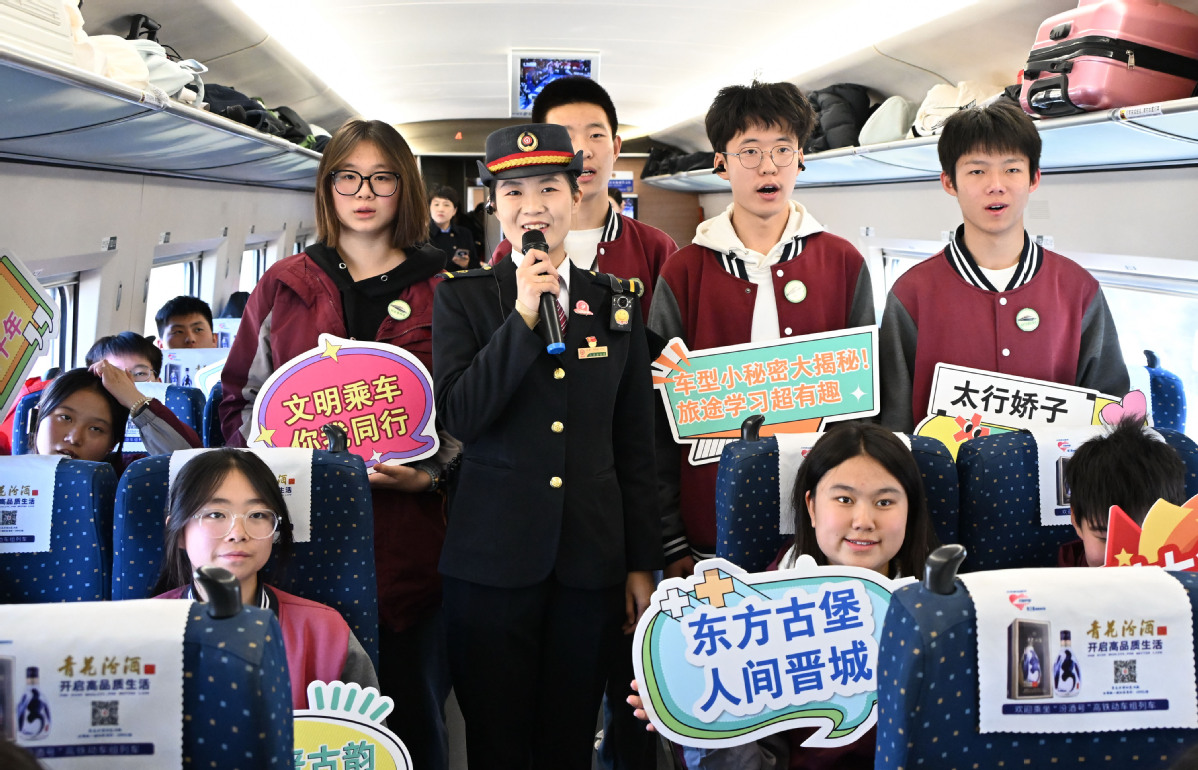 中国日报网太原电 11月22日9时39分,D4905次列车从太原南站启程,驶向晋城东站,来自山西博雅培文实验学校的556名师生开启为期3天的研学之旅。这是山西首次开行高铁研学专列。